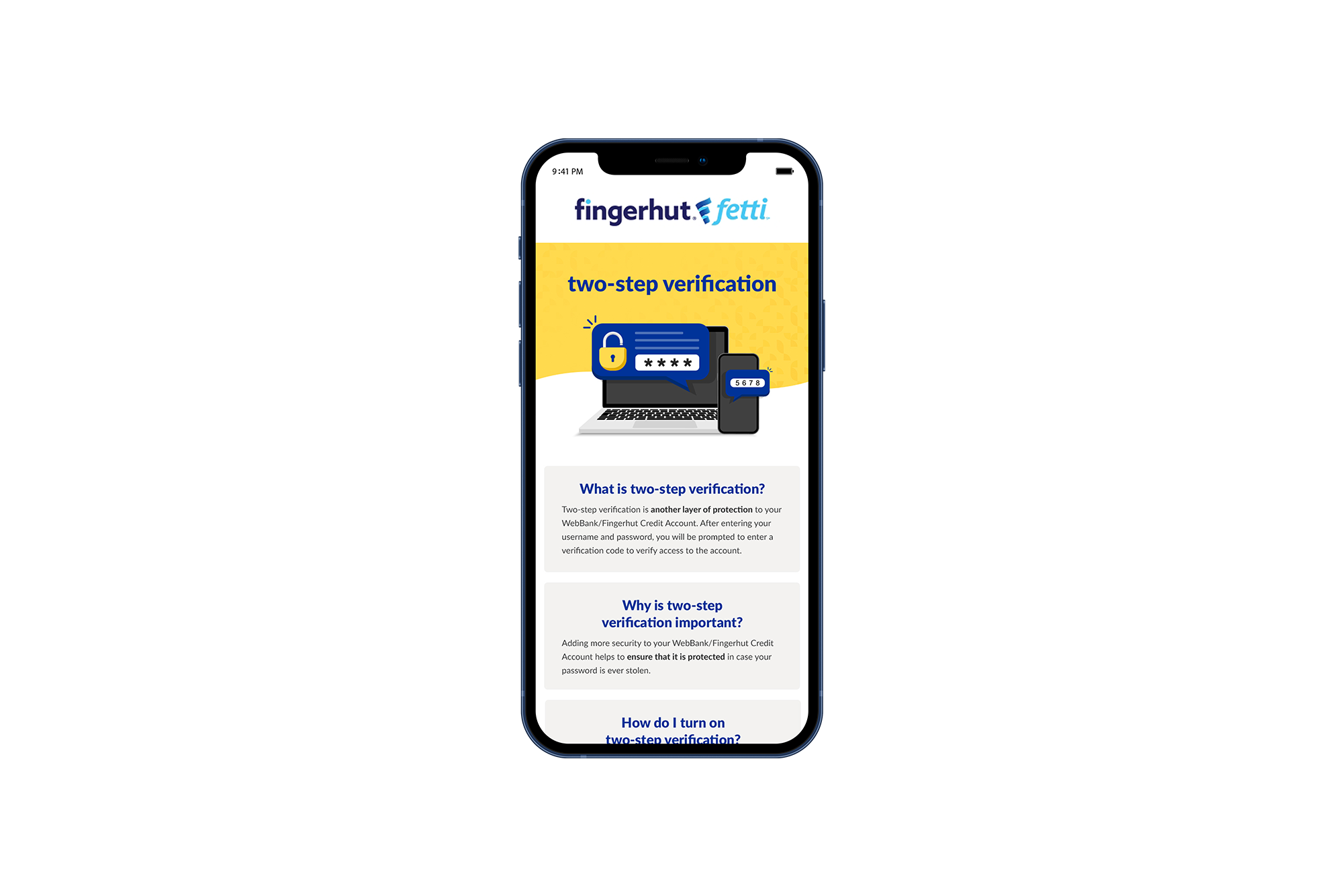 As part of Fingerhut’s ongoing digital transformation, I designed a series of account-focused email communications to inform and engage customers about important updates to their account preferences and security settings.