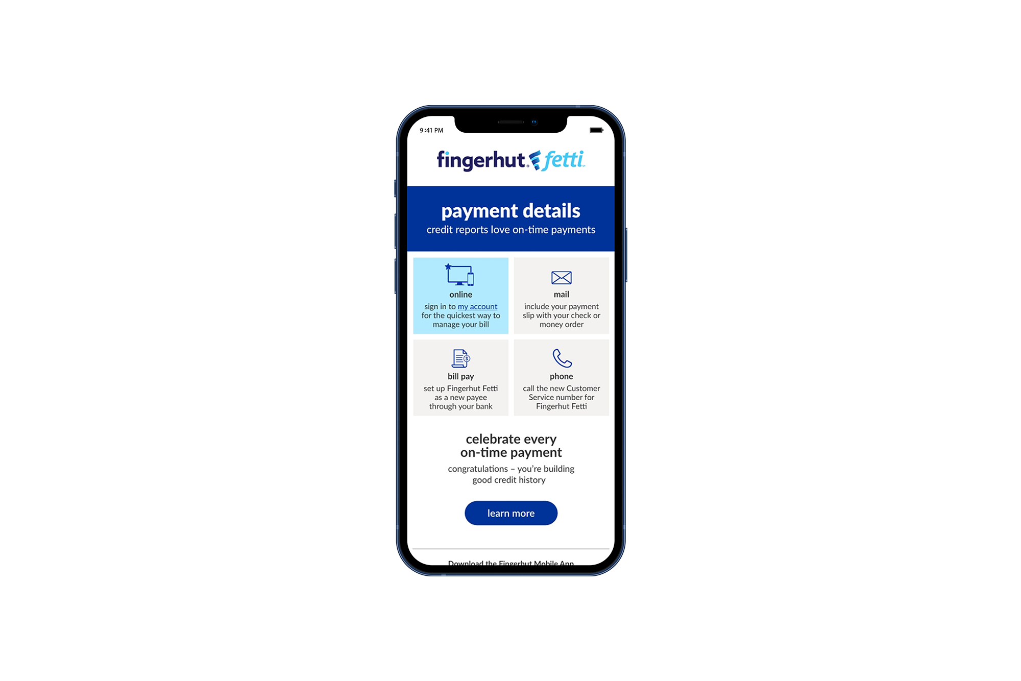 The campaign improved visibility and understanding of Fingerhut Fetti’s new payment options, reducing confusion among account holders. The simplified presentation of information increased engagement with the online payment portal and supported Fingerhut’s broader goal of helping customers build positive credit history through consistent, on-time payments.